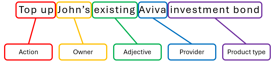 - "Top up John's existing Aviva investment bond", or